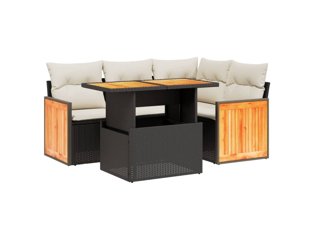 5dílná zahradní sedací souprava s poduškami černá polyratan 3273940