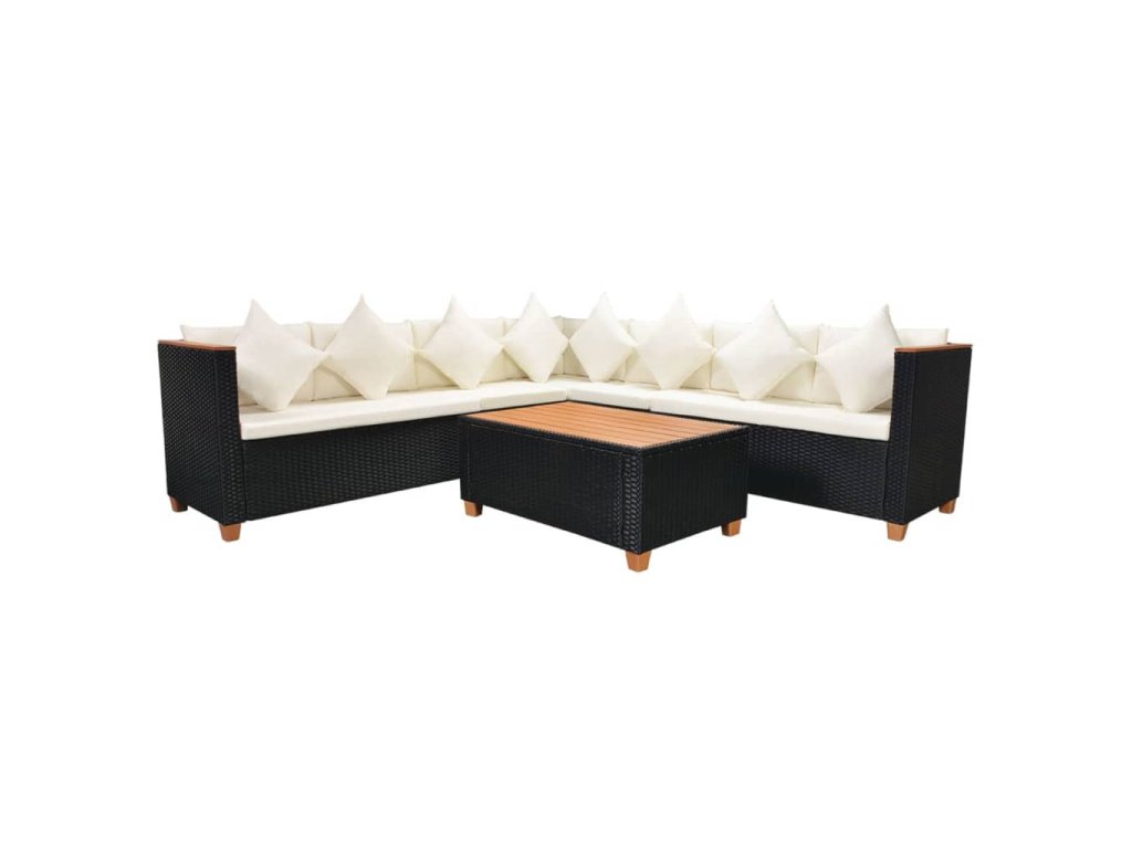 5dílná zahradní sedací souprava s poduškami polyratan černá 42997