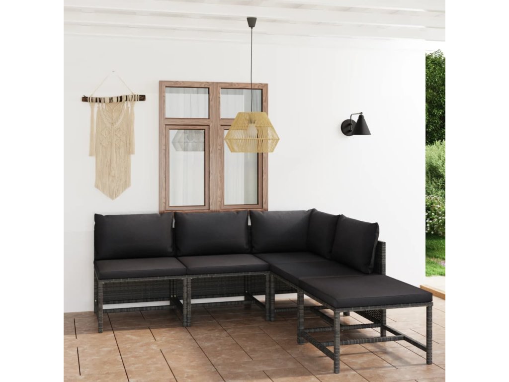 5dílná zahradní sedací souprava s poduškami polyratan šedá 3059754