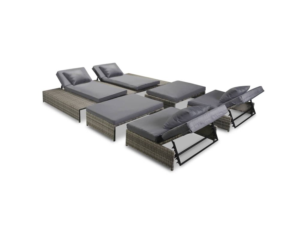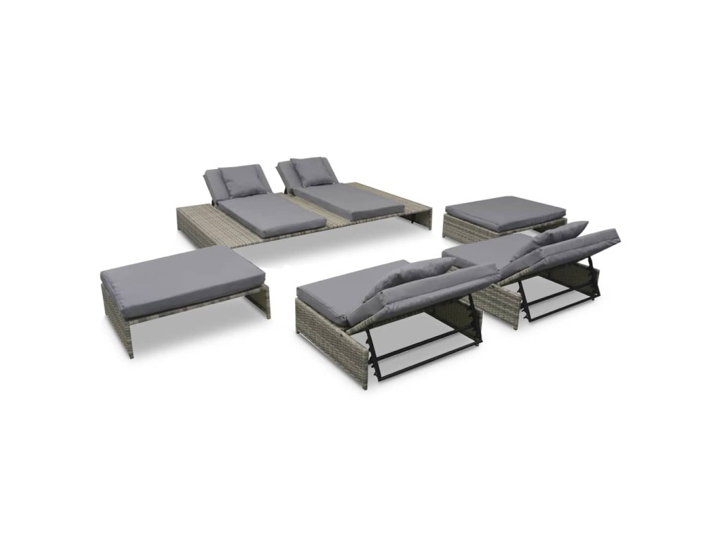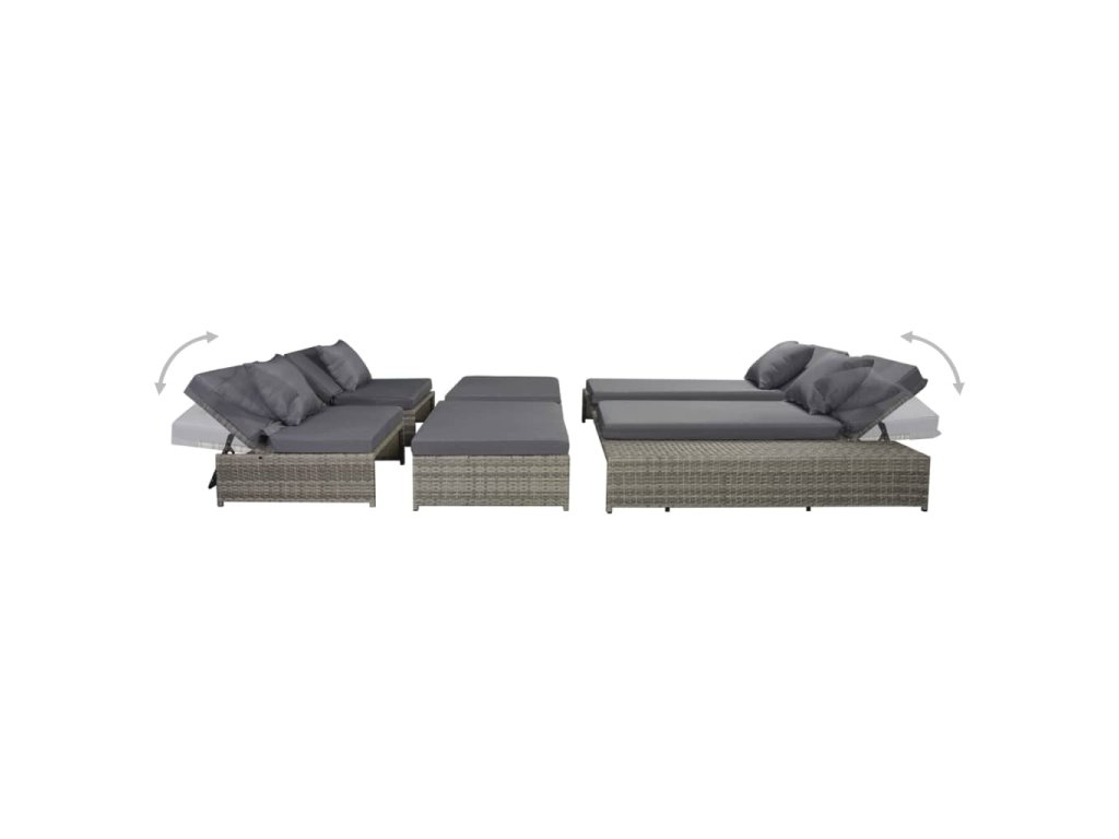 Díky nepromokavému PE ratanu, odolnému vůči povětrnostním vlivům, je venkovní nábytek snadno čistitelný, odolný a vhodný pro každodenní použití. Souprava má robustní a odolný ocelový rám s práškovým povrchem. Opěradla dvojitého lehátka a pohovek lze nastavit do té nejpohodlnější polohy. Tlusté, odnímatelné polstry a polštáře přispívají k pohodlnému ležení a sezení. Velké lehátko můžou využívat 2 osoby a na bočnice si můžete na dosah ruky odkládat své nápoje, telefony, knihy nebo jiné předměty. Sada je lehká a modulární a může být umístěna v různých konfiguracích, aby vyhovovala jakémukoli prostředí.