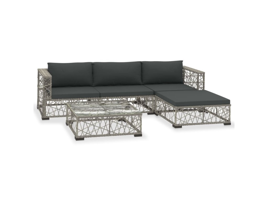 5dílná zahradní sedací souprava s poduškami polyratan šedá 46808