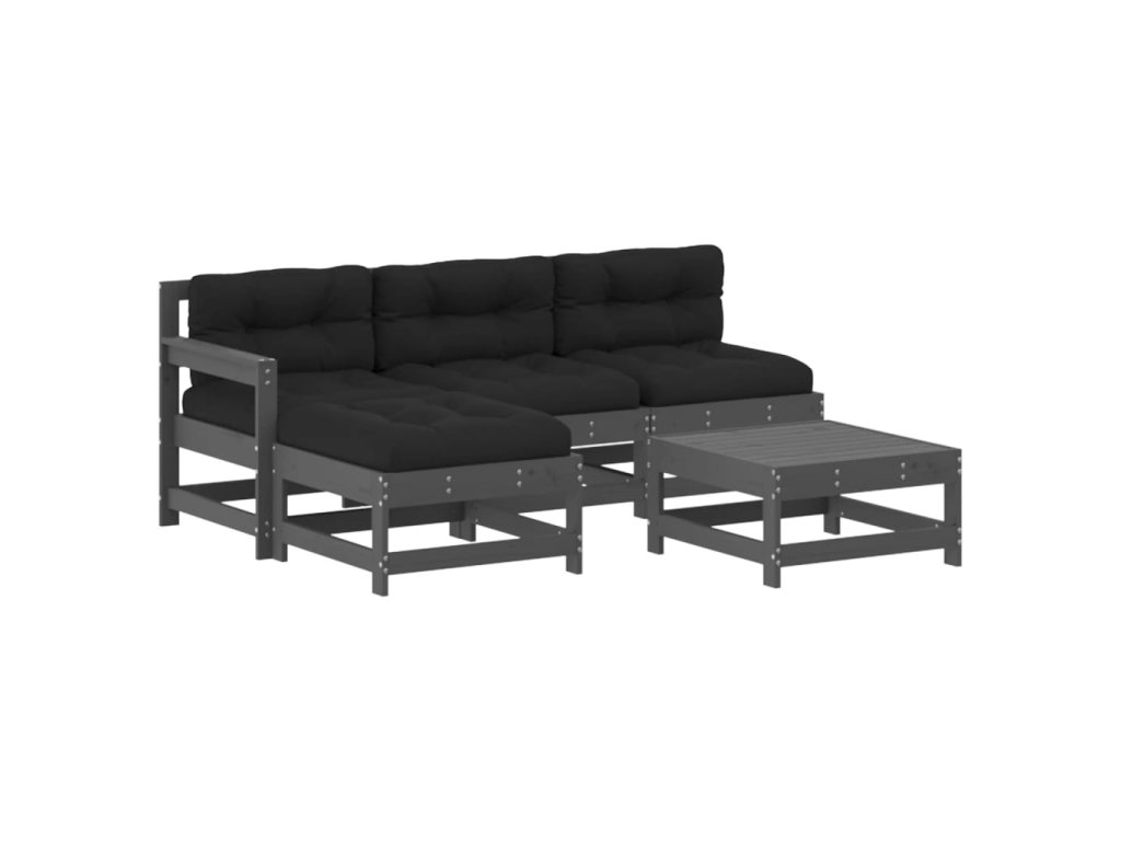 5dílná zahradní sedací souprava s poduškami šedá masivní dřevo 3186062