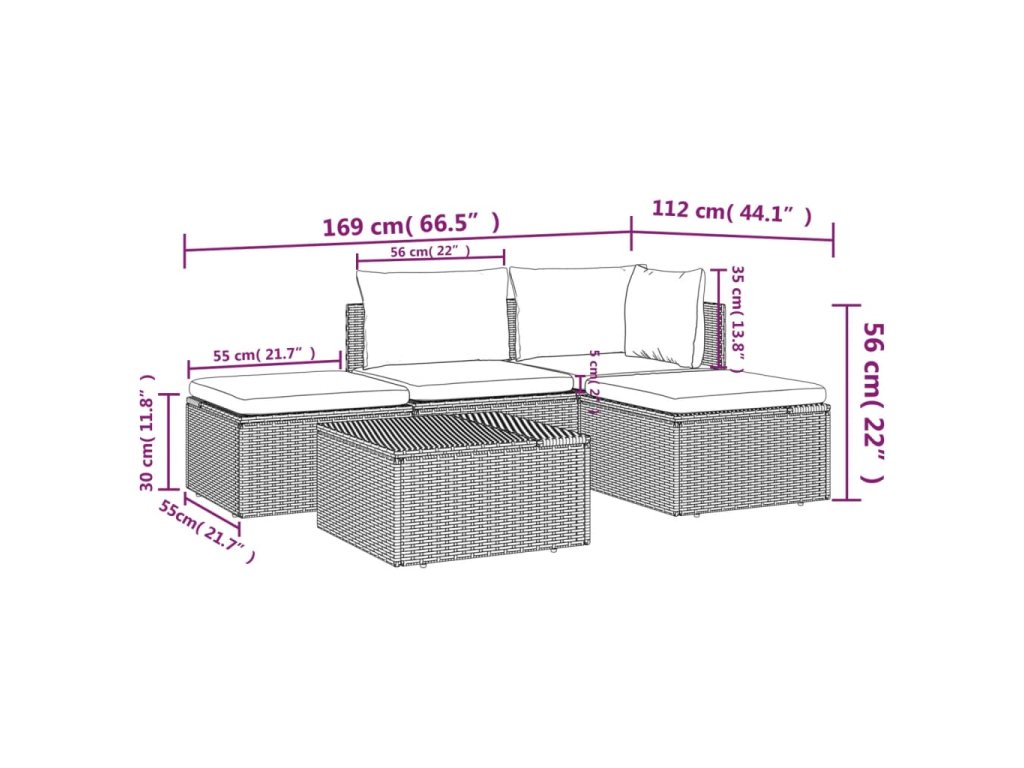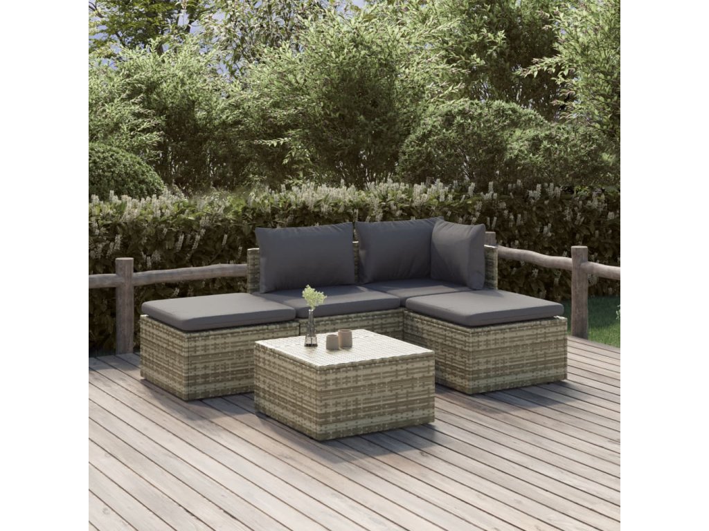 5dílná zahradní sedací souprava s poduškami šedá polyratan 3157316