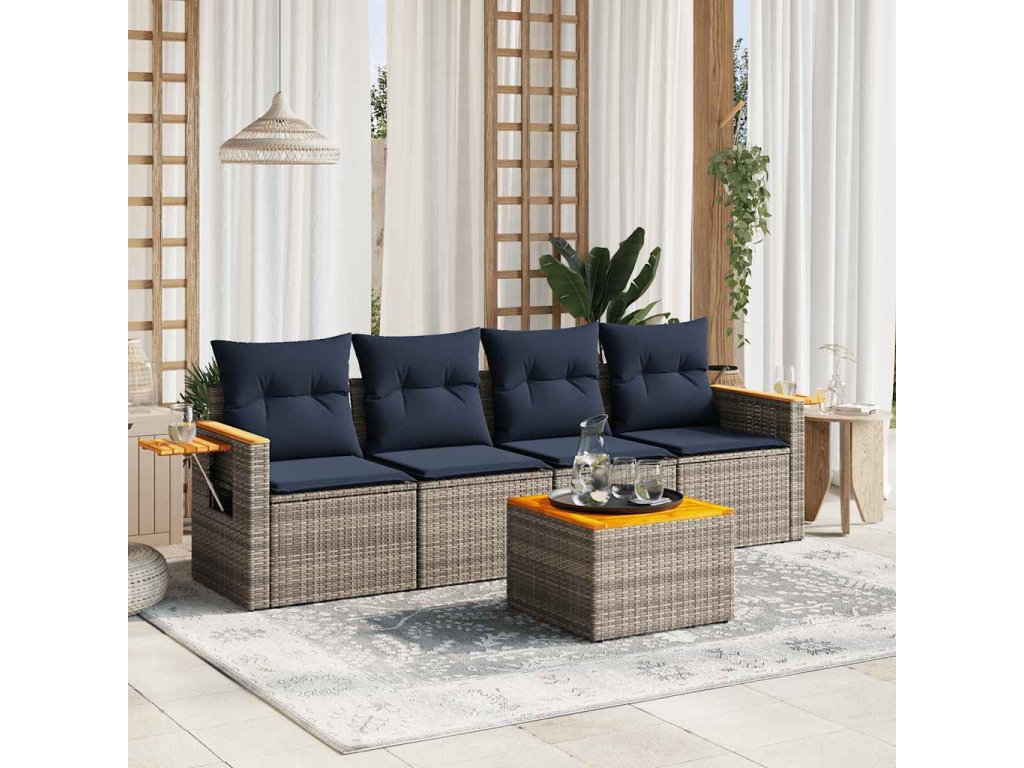 5dílná zahradní sedací souprava s poduškami šedá polyratan 3226621
