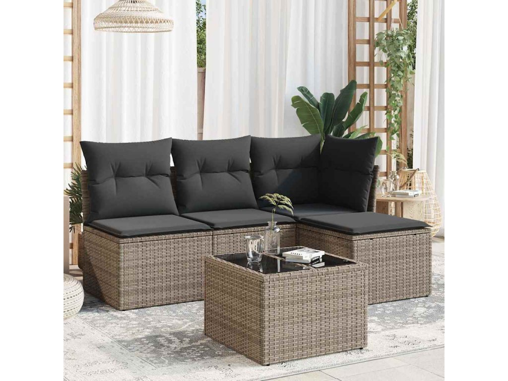 5dílná zahradní sedací souprava s poduškami šedá polyratan 3249349