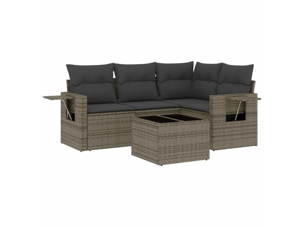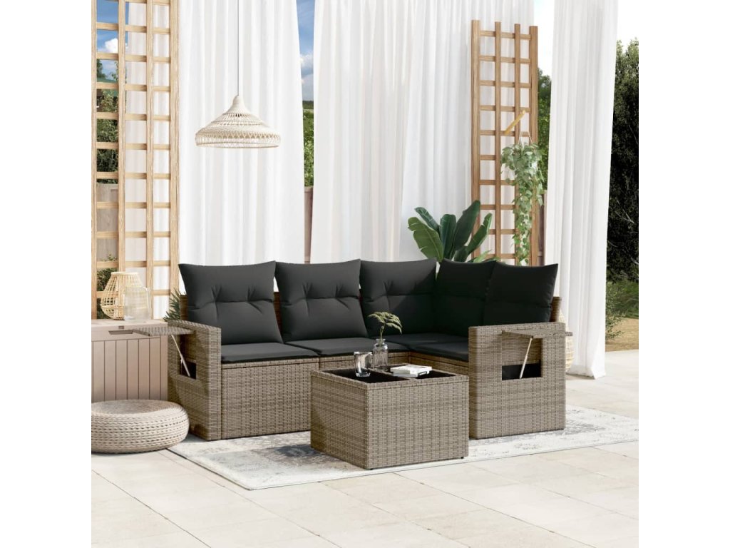 5dílná zahradní sedací souprava s poduškami šedá polyratan 3252457
