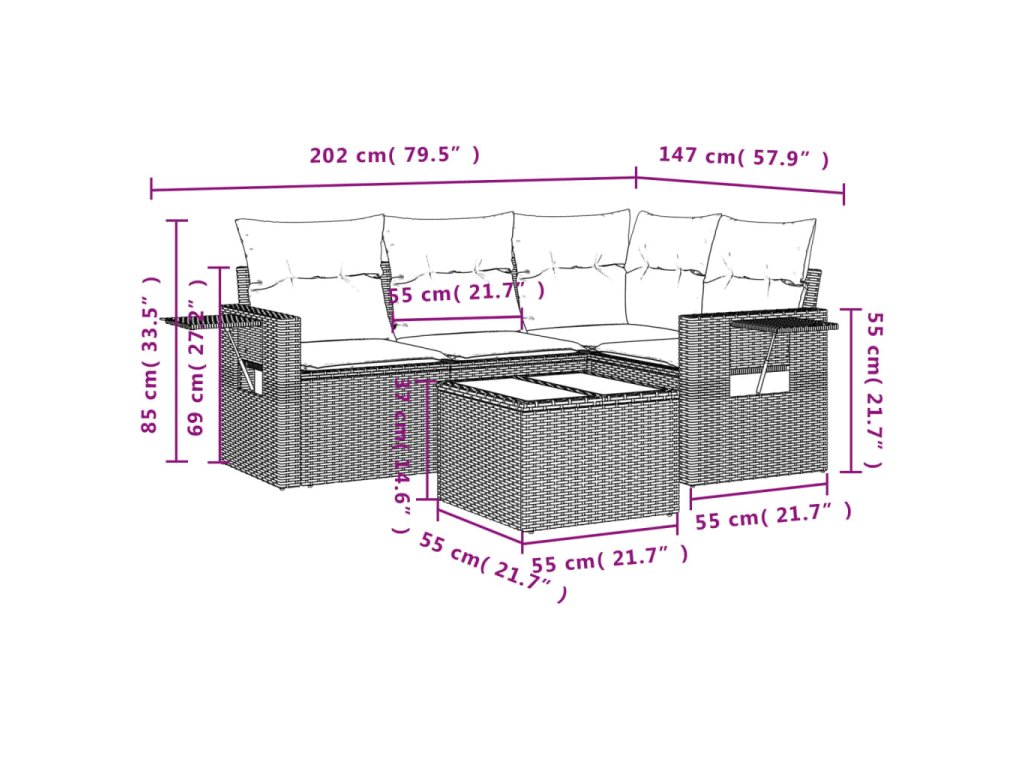 Tato zahradní sedací souprava je dokonalým doplňkem vaší zahrady, terasy nebo dvorku a poskytne vám pohodlné a příjemné místo, kde si můžete povídat s rodinou a přáteli nebo jen tak odpočívat a užívat si pobyt venku.