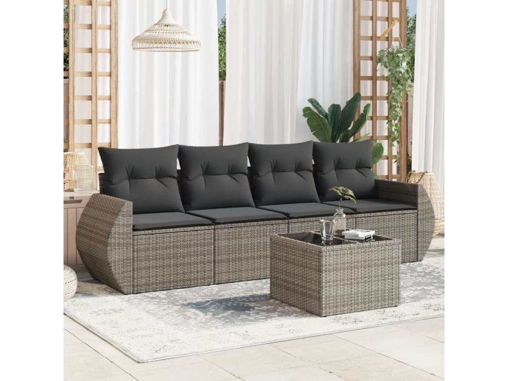 5dílná zahradní sedací souprava s poduškami šedá polyratan 3253427