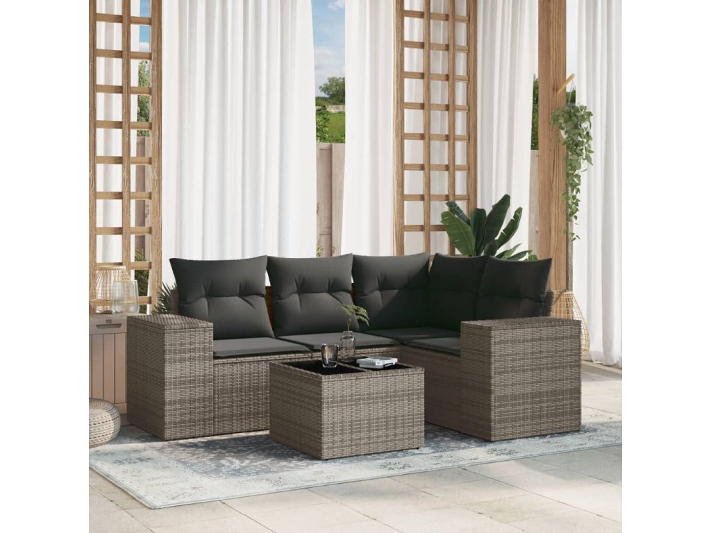 5dílná zahradní sedací souprava s poduškami šedá polyratan 3254857