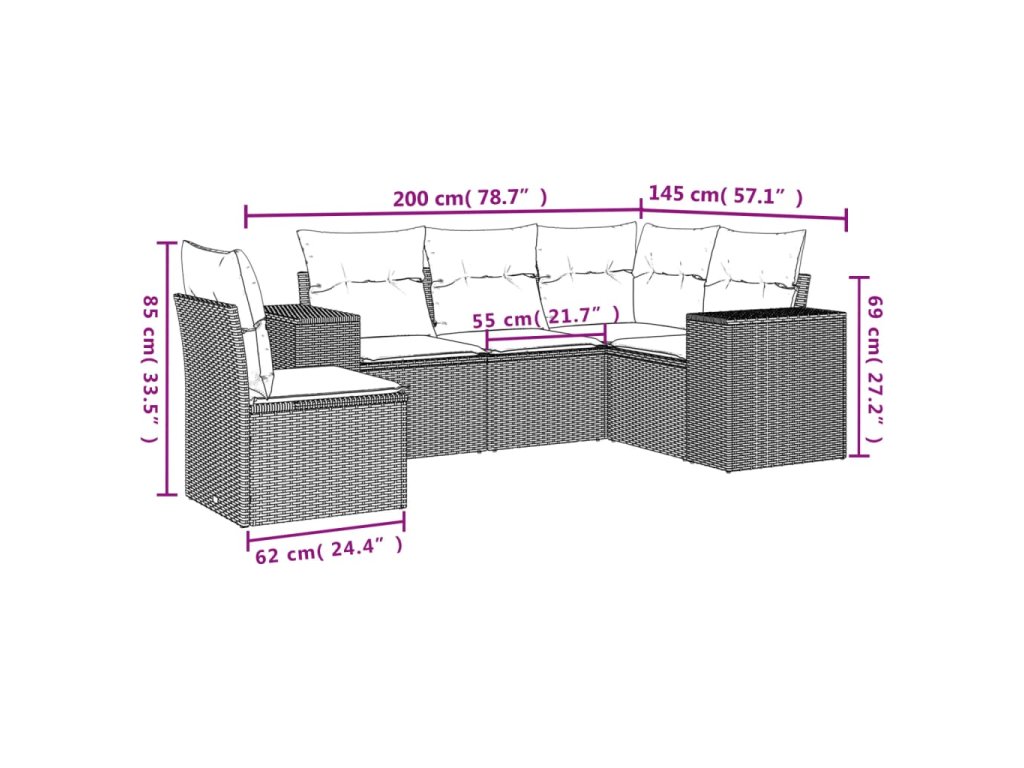 Tato zahradní sedací souprava je dokonalým doplňkem vaší zahrady, terasy nebo dvorku a poskytne vám pohodlné a příjemné místo, kde si můžete povídat s rodinou a přáteli nebo jen tak odpočívat a užívat si pobyt venku.