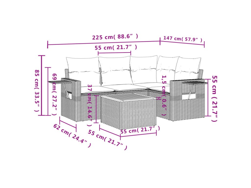 Tato zahradní sedací souprava je dokonalým doplňkem vaší zahrady, terasy nebo dvorku a poskytne vám pohodlné a příjemné místo, kde si můžete povídat s rodinou a přáteli nebo jen tak odpočívat a užívat si pobyt venku.