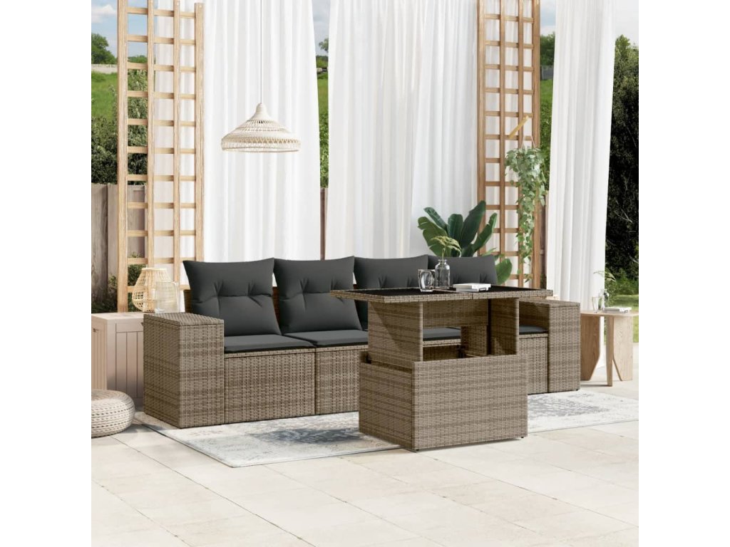 5dílná zahradní sedací souprava s poduškami šedá polyratan 3268990
