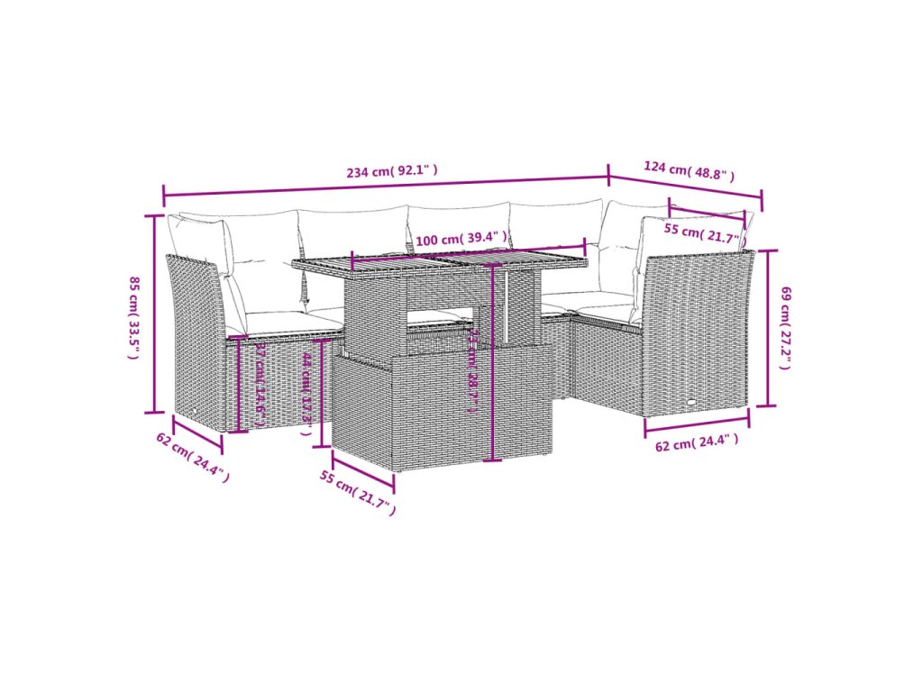 Tato zahradní sedací souprava je dokonalým doplňkem vaší zahrady, terasy nebo dvorku a poskytne vám pohodlné a příjemné místo, kde si můžete povídat s rodinou a přáteli nebo jen tak odpočívat a užívat si pobyt venku.