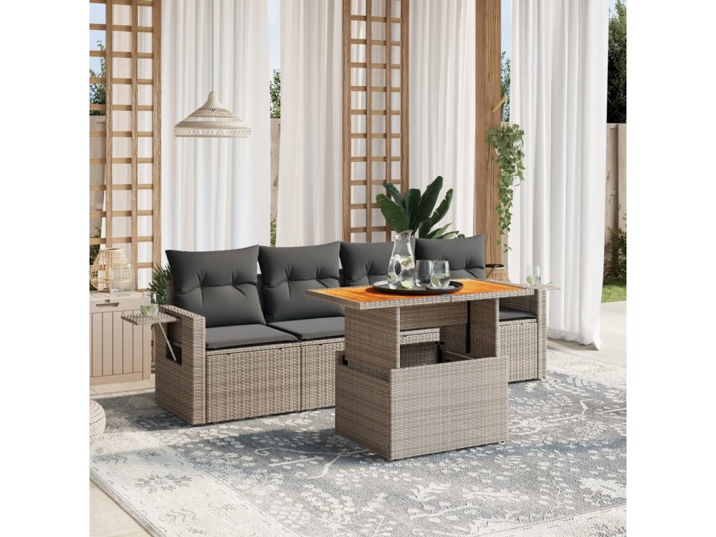 5dílná zahradní sedací souprava s poduškami šedá polyratan 3271634