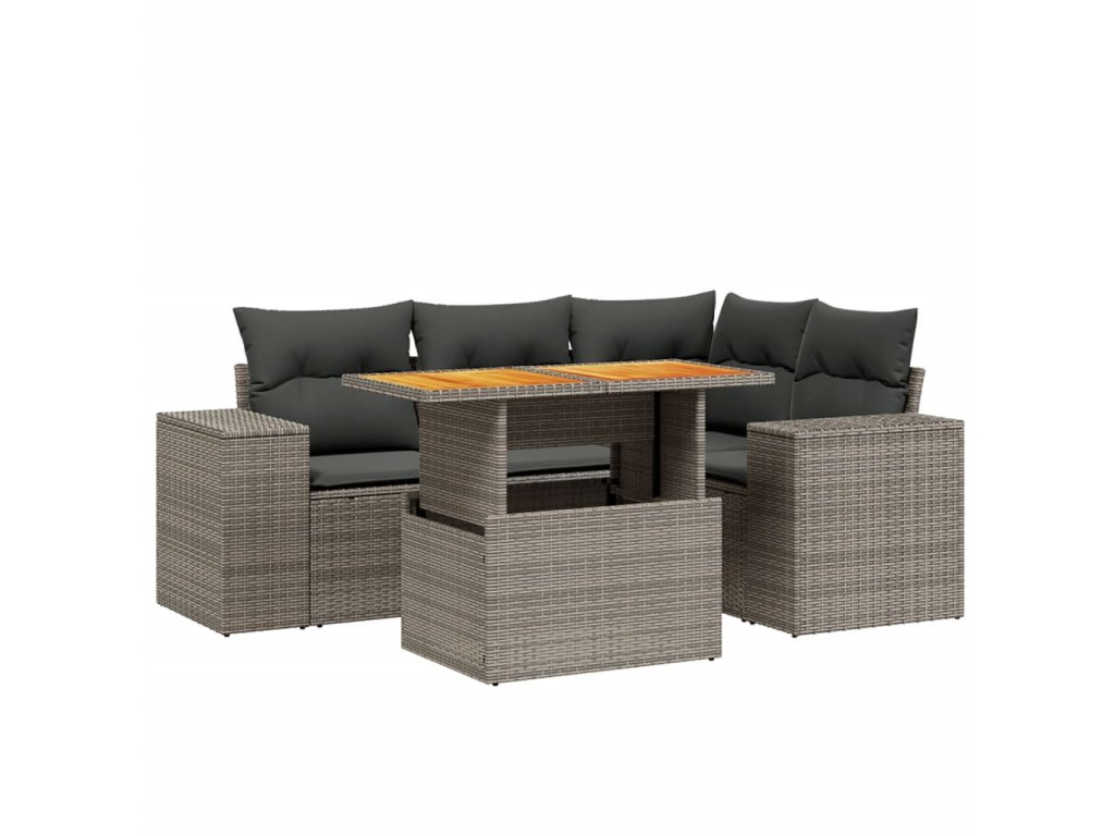 5dílná zahradní sedací souprava s poduškami šedá polyratan 3272621