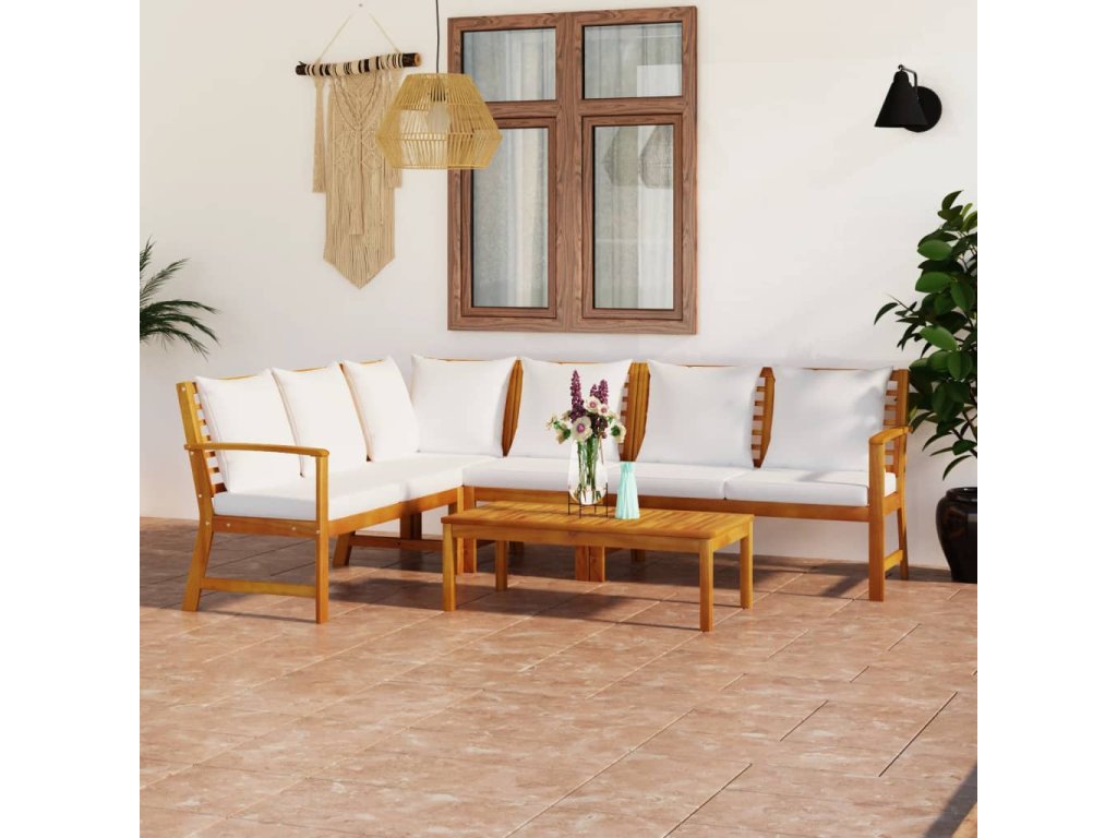 5dílná zahradní sedací souprava s poduškou krémová akácie 3057773