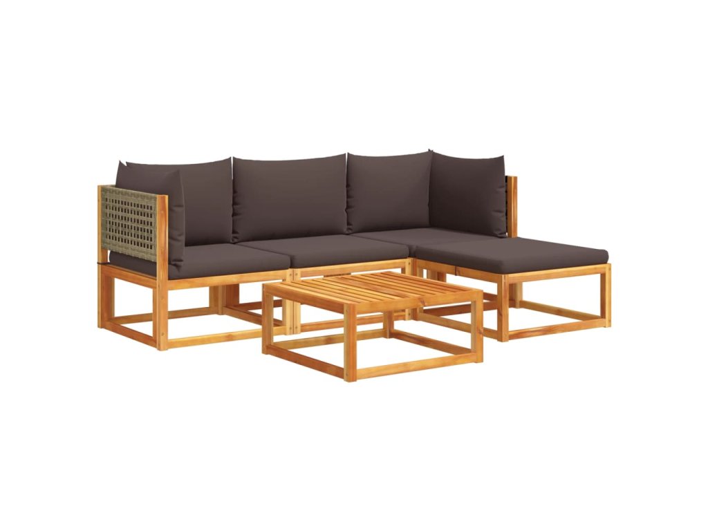 5dílná zahradní sedací souprava s polštáři, akácie a ratan 3278895