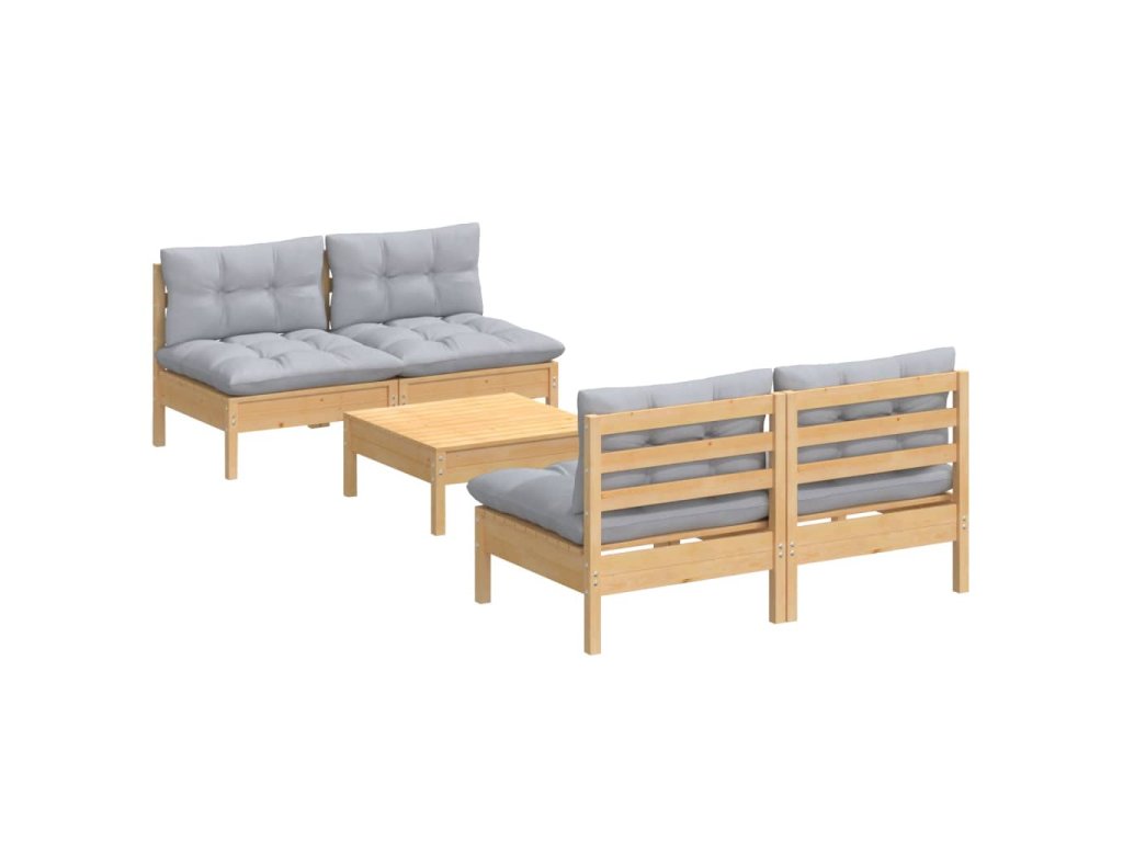 5dílná zahradní sedací souprava s šedými poduškami borovice 3096003