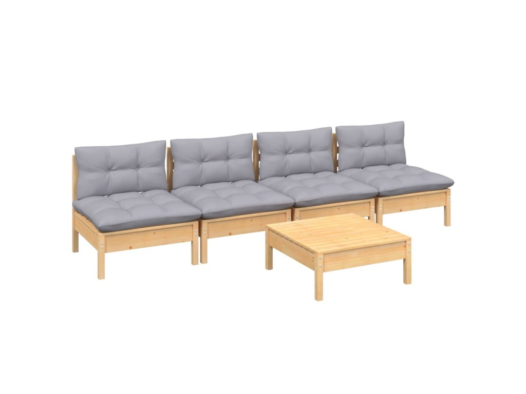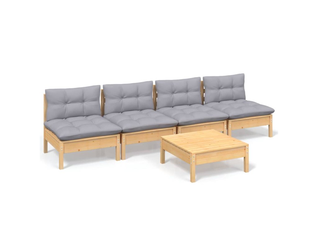 5dílná zahradní sedací souprava s šedými poduškami borovice 3096129