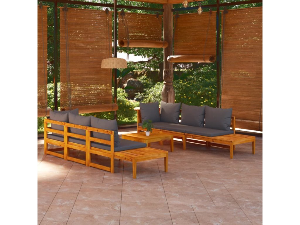 5dílná zahradní sedací souprava s tmavě šedými poduškami akácie 3087275