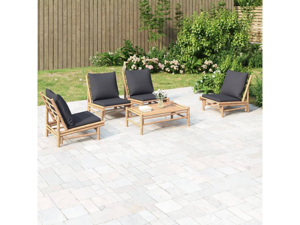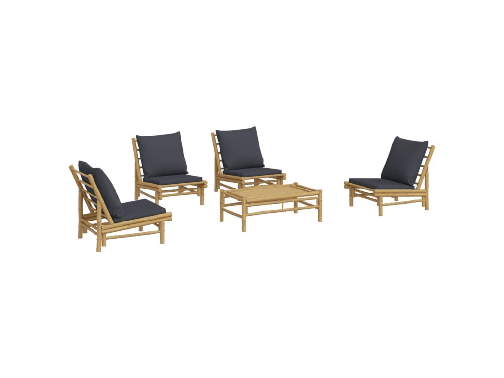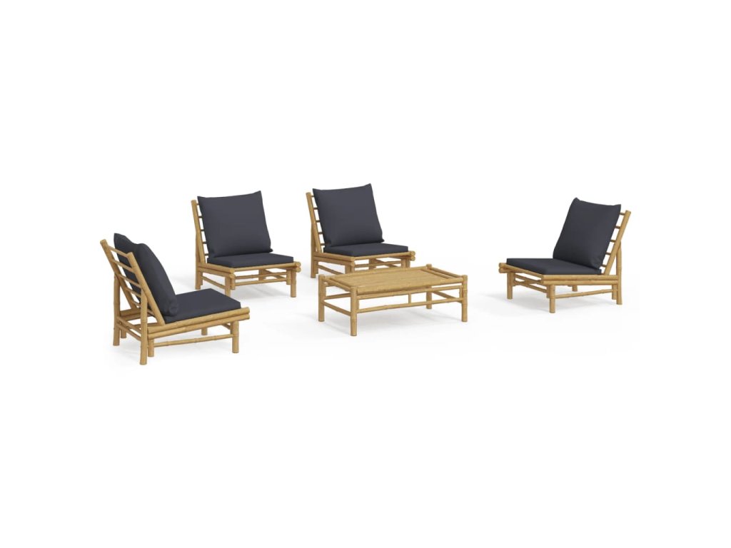 5dílná zahradní sedací souprava s tmavě šedými poduškami bambus 3156486