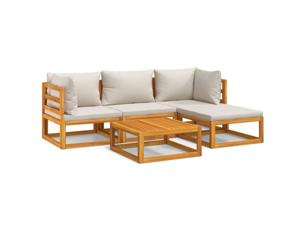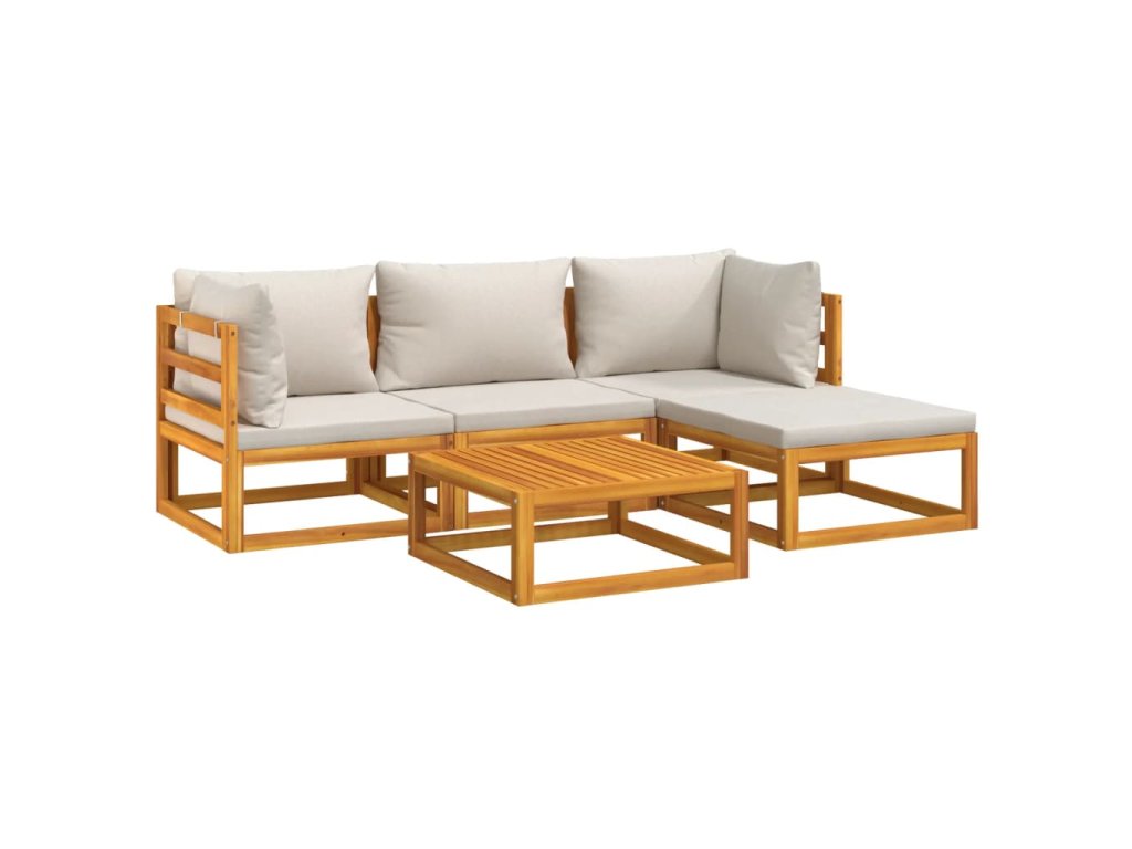 5dílná zahradní sedací souprava světle šedé podušky masiv 3155279