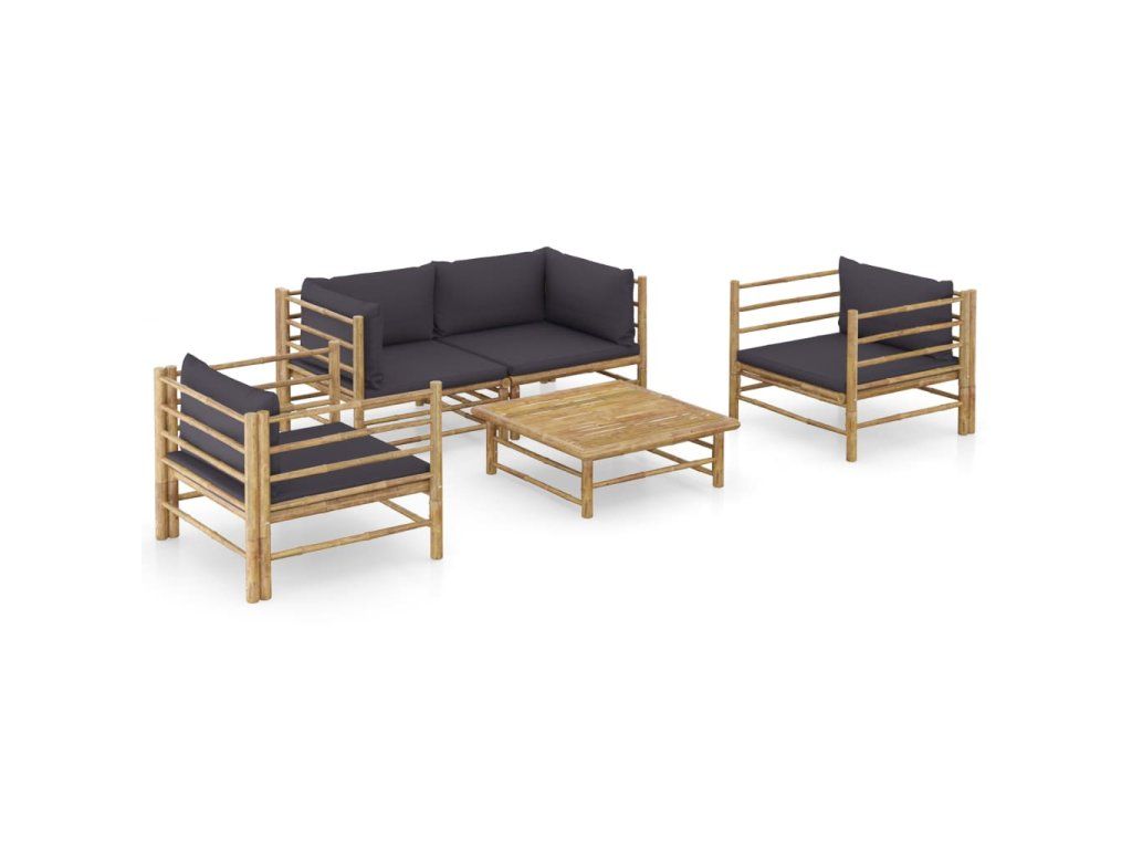 5dílná zahradní sedací souprava + tmavě šedé podušky bambus 3058208