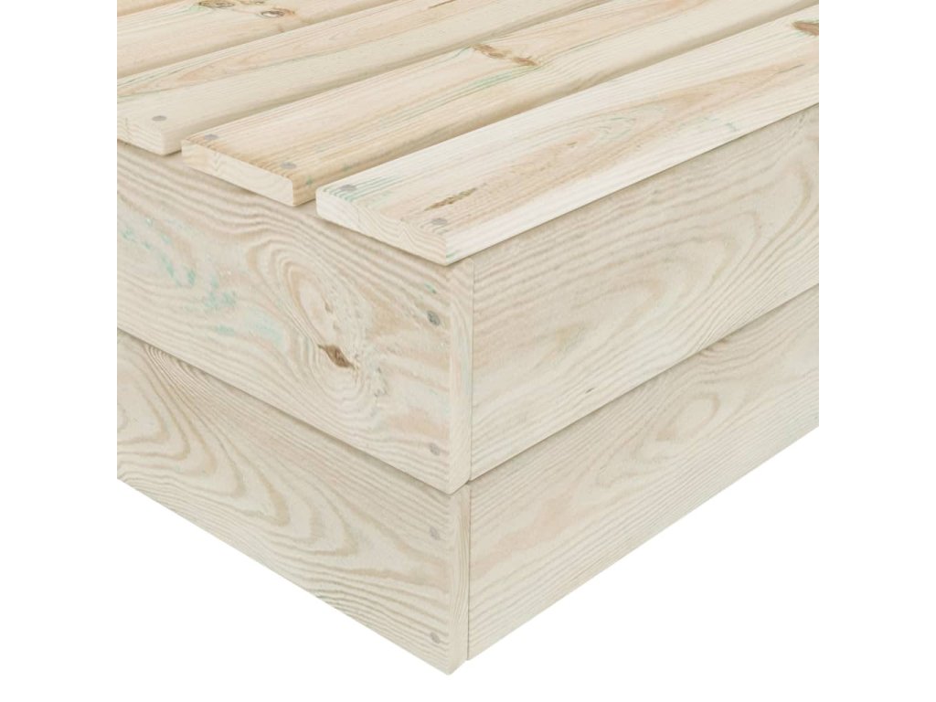 Zahradní sedací souprava je vyrobená z impregnovaného smrkového dřeva, takže je velice odolná a stabilní. Má pevnou konstrukci a nevyžaduje téměř žádnou údržbu. Stolek má robustní horní desku, je proto ideální k odkládání nápojů a občerstvení na dosah ruky. Podušky na palety mají hustě polstrované čalounění ze 100% polyesteru, jsou nesmírně měkké a zajistí vám maximální pohodlí. Zahradní pohovky mají modulární design, a tak je můžete přizpůsobit každému prostředí dle svých představ.