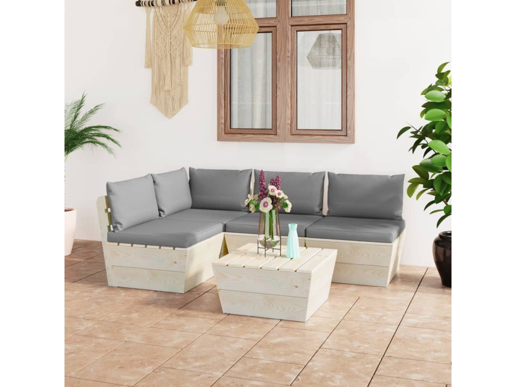 5dílná zahradní sedací souprava z palet + podušky smrkové dřevo 3063481