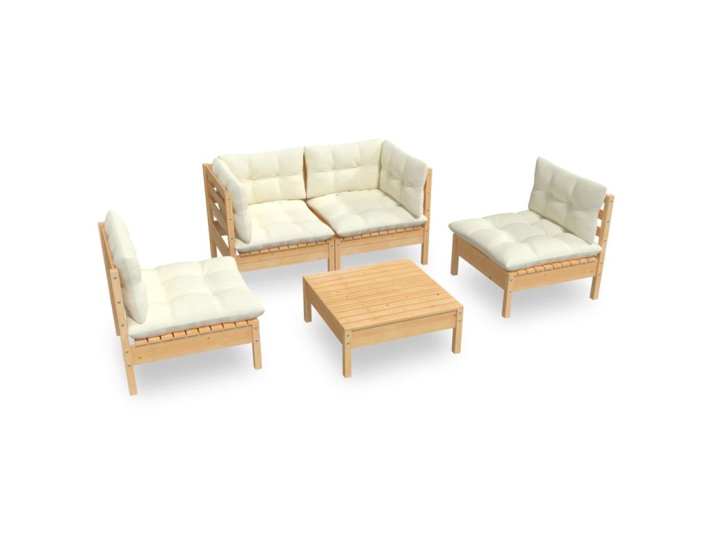 5dílná zahradní souprava krémové podušky masivní borovice 3096178