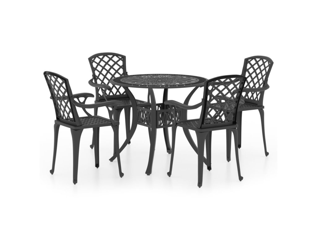 Zahradní stůl a židle z litého hliníku jsou robustní a hodně toho vydrží. Jelikož jsou vyrobené z materiálu, který nerezaví a nepodléhá klimatickým vlivům, jedná se o ideální nábytek pro venkovní použití. Vzhledem ke svému překrásnému designu zapůsobí bistro set ve vašem venkovním bydlení jako elegantní doplněk. Konferenční stolek má navíc uprostřed otvor, kam můžete zasunout slunečník, abyste se ochránili před sluníčkem či deštěm.