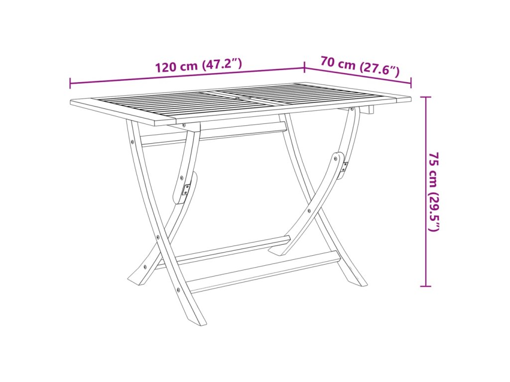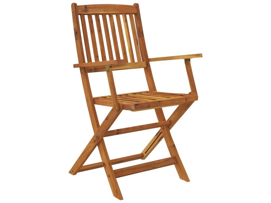 Zahradní jídelní set je vyrobený z masivního akáciového dřeva. Jedná se o tvrdé dřevo z tropů, které je odolné vůči povětrnostním vlivům a má dlouhou životnost. Olejem napuštěný povrch nábytku snadno vyčistíte navlhčeným hadříkem. Jak zahradní židle, tak stůl je možné složit, aby zbytečně nepřekážely, když je zrovna nepoužíváte.