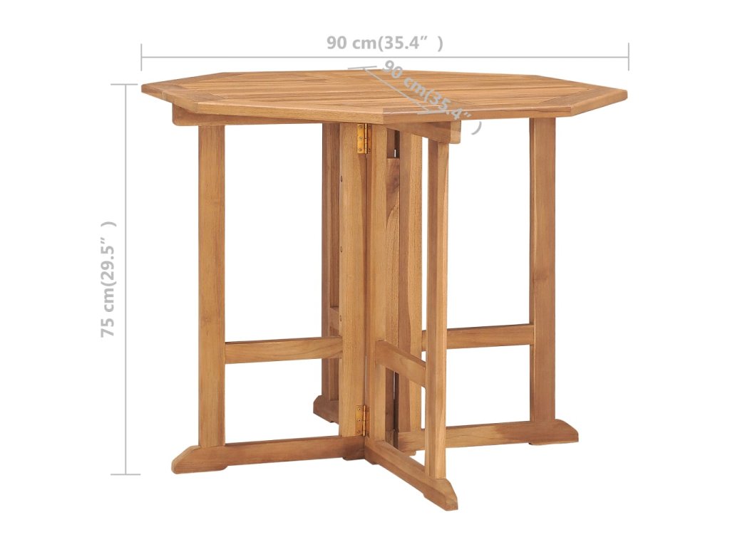 Nábytek je zhotovený z extrémně odolného teakového tvrdého dřeva, které již prošlo procesem smršťování, bylo uměle vysušené a poté jemně a dohladka obroušené. Toto dřevo je oceňované pro svou výjimečnou pevnost a klimatickou odolnost, a proto je zdaleka nejvhodnějším materiálem pro výrobu zahradního nábytku. Jedná se o skvělou volbu, pokud si chcete pořídit zahradní vybavení, které vám vydrží sloužit dlouhá léta. Když jídelní stůl a židle zrovna nepoužíváte, můžete ji složit a ušetřit tak místo.