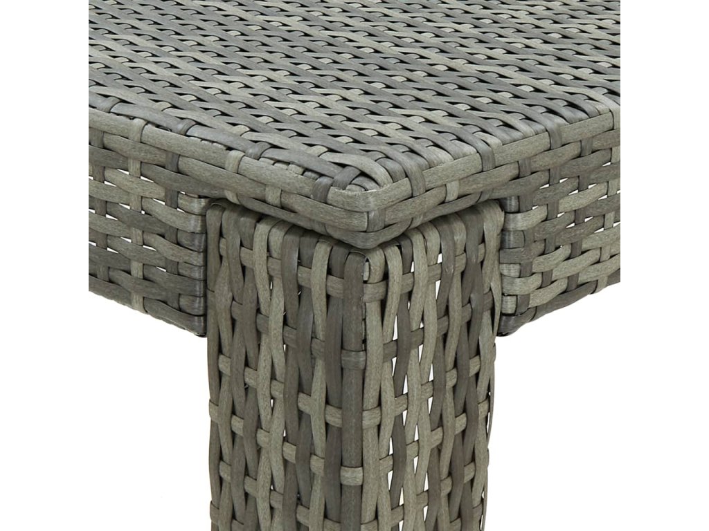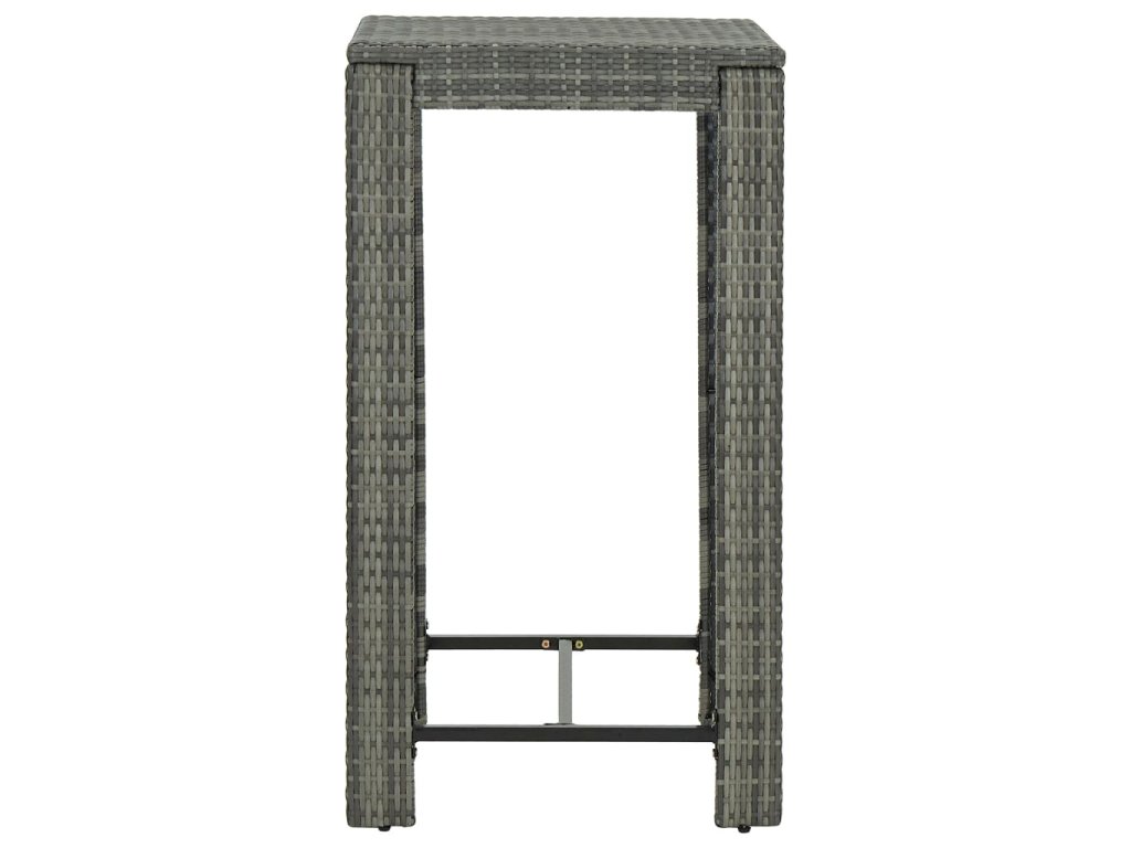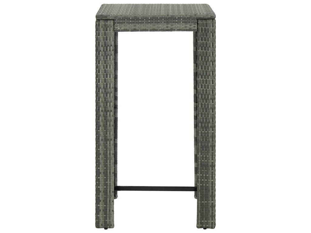 Barový stůl je zpevněný ocelovým rámem s práškovým nástřikem, takže je stabilní a bytelný. Čtvercová deska stolu je ideální pro servírování nápojů, jídla nebo k vystavování dekorativních předmětů. Stoličky mají robustní rám z oceli a jsou vyrobené z klimaticky odolného PE ratanu, který je zárukou stability a umožňuje snadné přenášení. Poduška a opěrka na nohy přispívají k většímu pohodlí při sezení na stoličce. Polyesterový potah na podušky se skrytým zipem usnadňuje čištění.