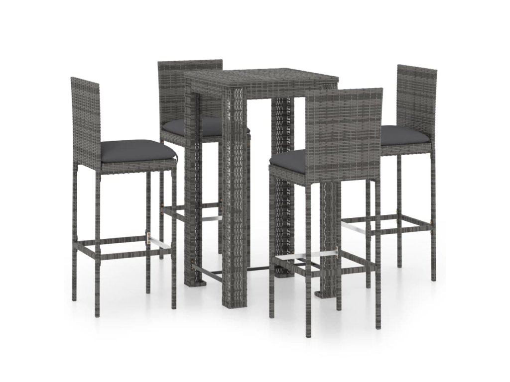 5dílný venkovní barový set s poduškami polyratan šedý 3064795