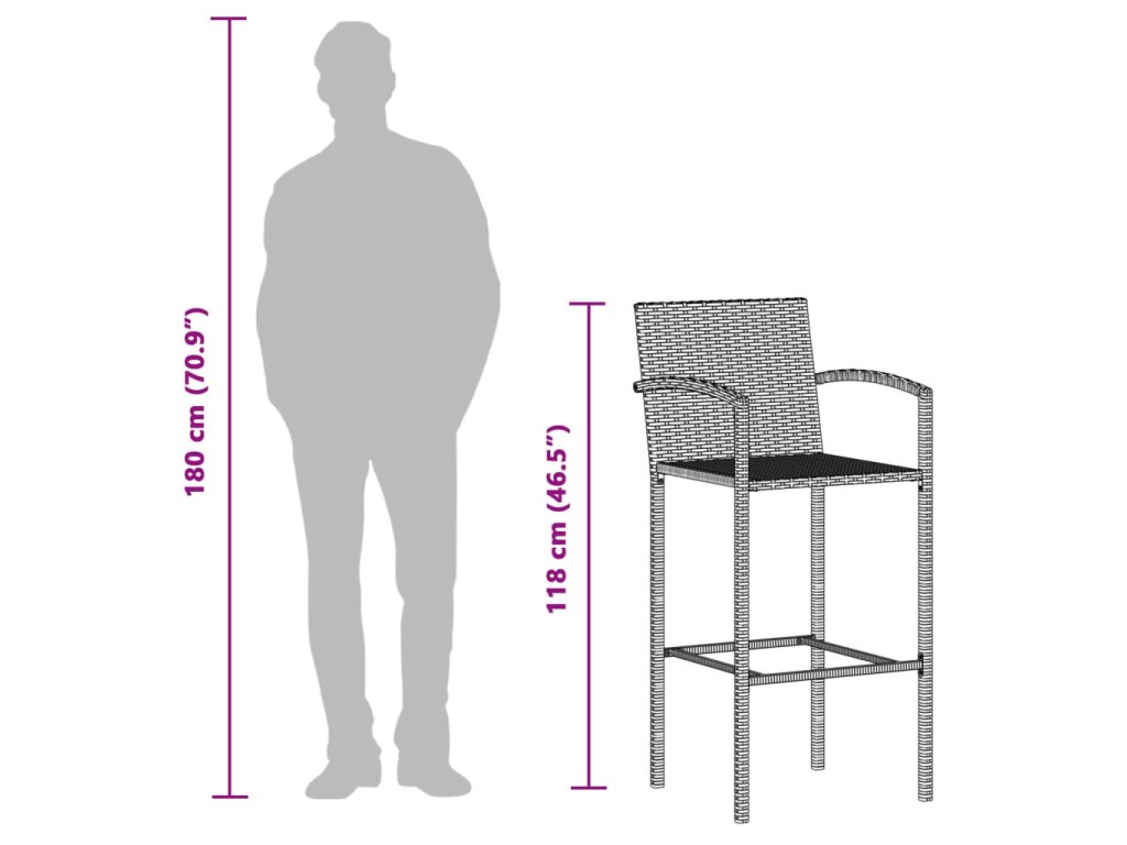 - Odolný materiál: PE ratan neboli polyratan je pevný syntetický materiál s nízkými nároky na údržbu, který vypadá jako přírodní ratan. Je lehký, snadno se čistí a běžně se používá pro venkovní nábytek díky své dlouhé životnosti a odolnosti vůči povětrnostním vlivům. Tyto barové stoličky jsou vyrobeny z lehkého PE ratanu, jsou stabilní a snadno se přemisťují.