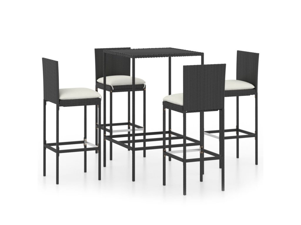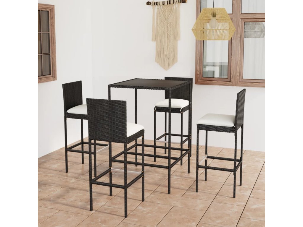 5dílný zahradní barový set s poduškami polyratan černý 3064830