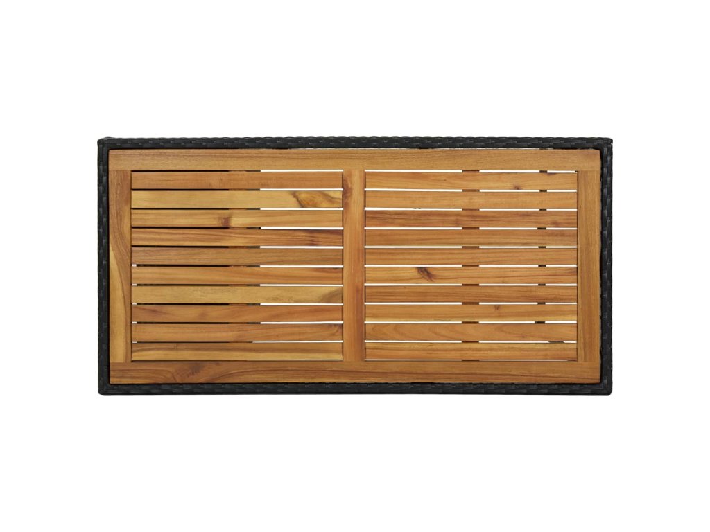 - Materiál: polyratan, práškově lakovaná ocel, akáciové dřevo s olejovaným povrchem, textil (100% polyester)