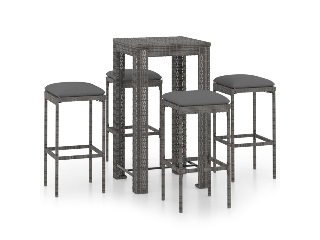 5dílný zahradní barový set s poduškami polyratan šedý 3064779