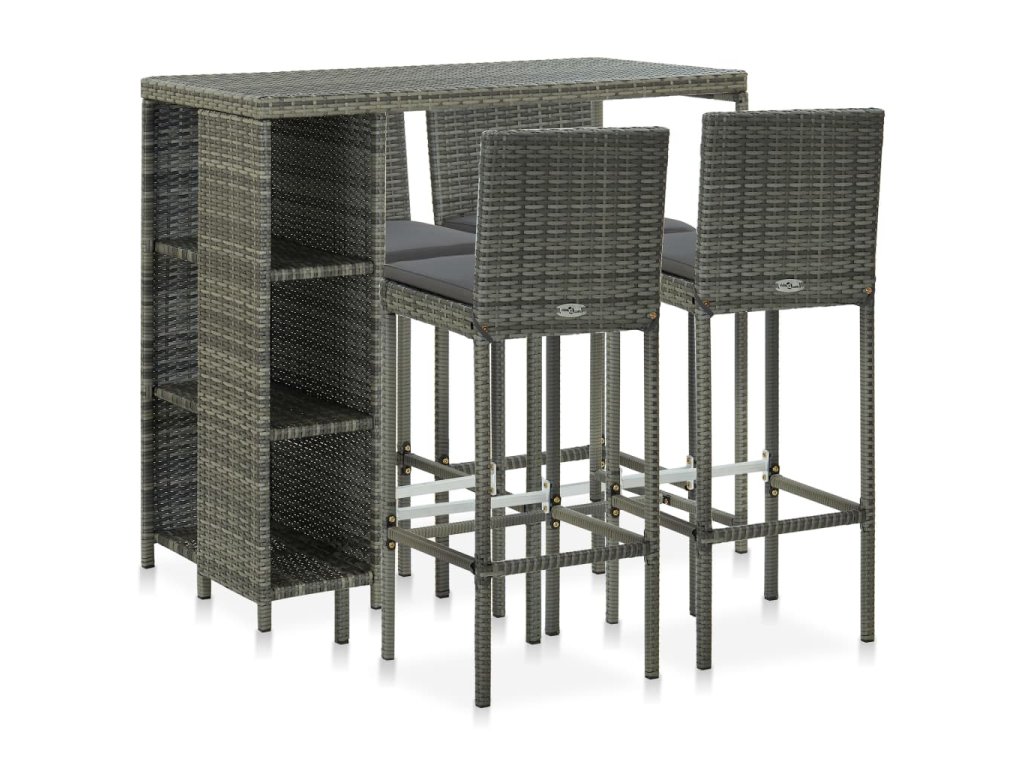 5dílný zahradní barový set s poduškami polyratan šedý 3064919
