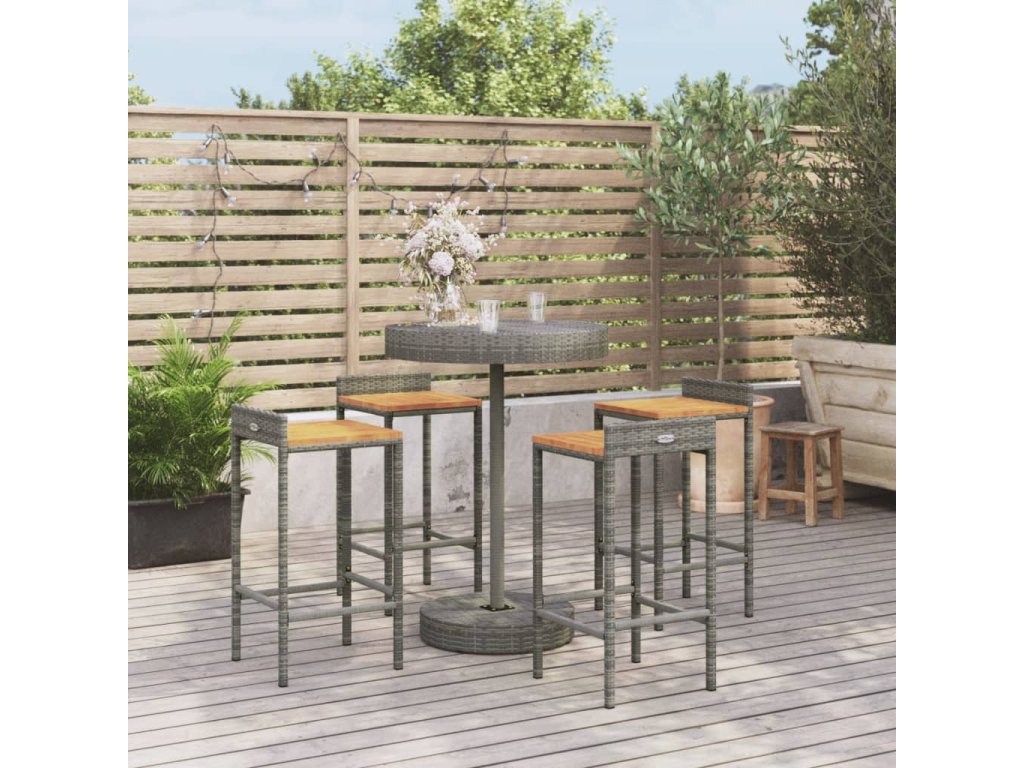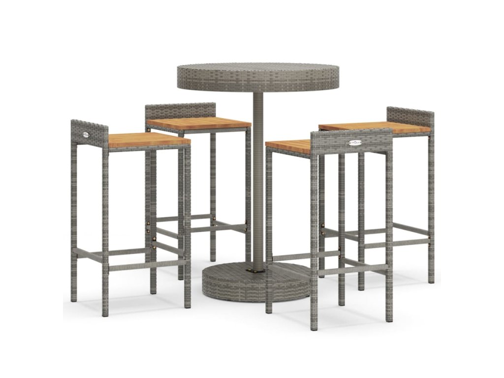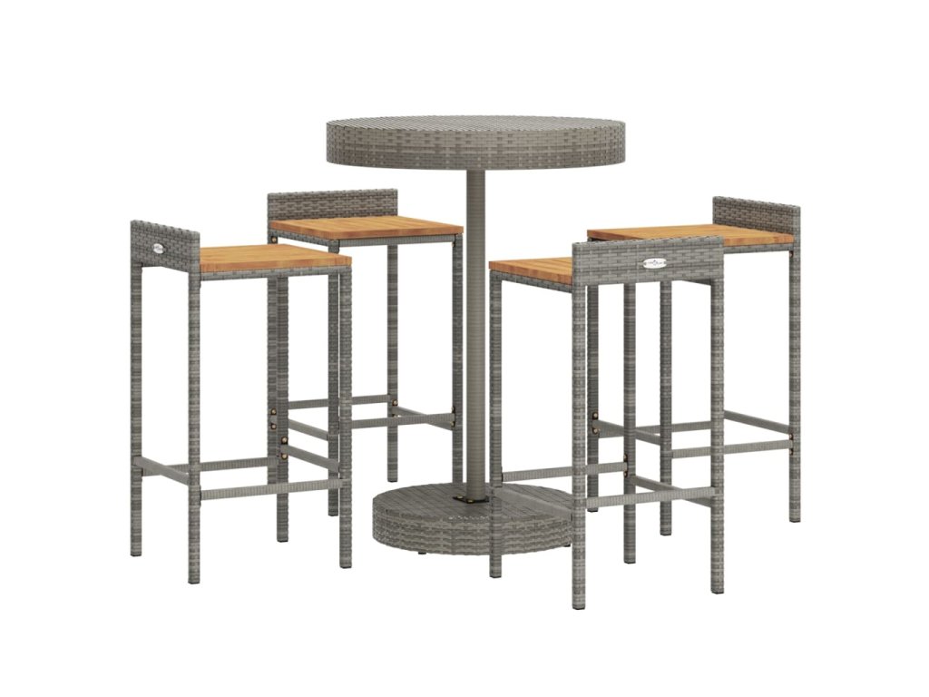 5dílný zahradní barový set šedý polyratan a masivní akácie 3187717