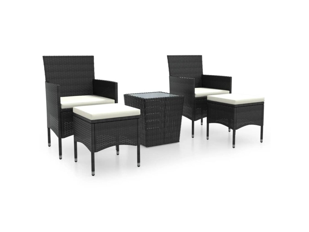 5dílný zahradní bistro set polyratan a tvrzené sklo černý 3058368