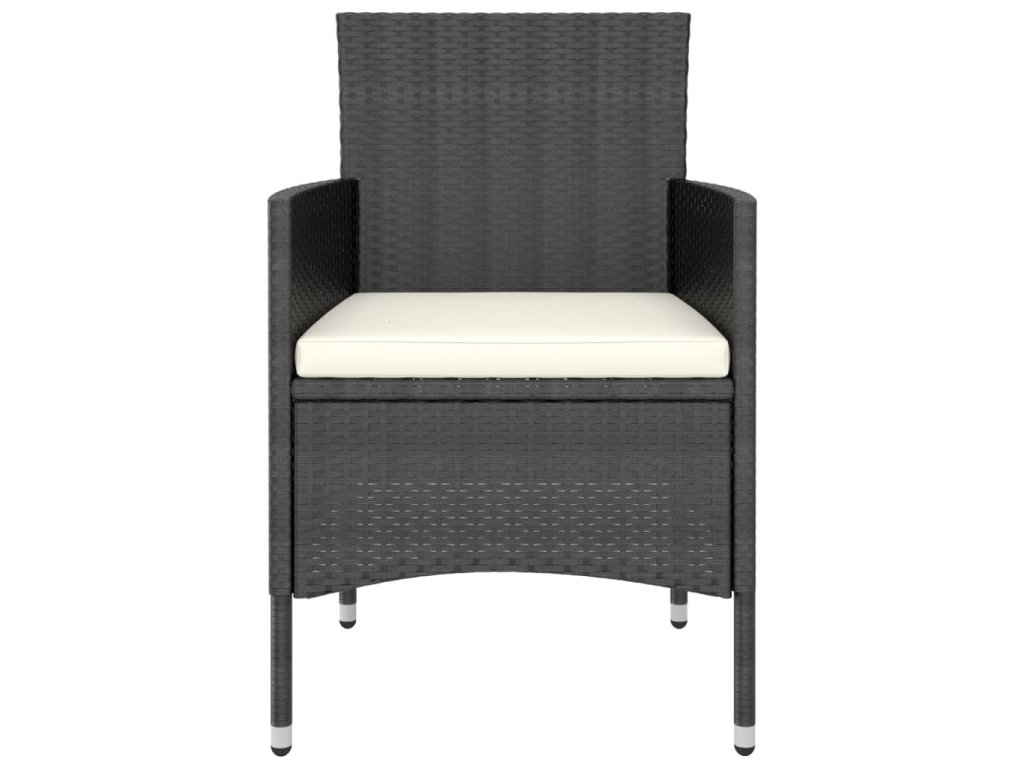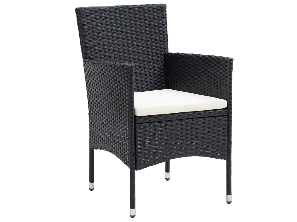 Stůl a židle mají práškově lakovaný ocelový rám opletený PE ratanem, který skvěle odolává povětrnostním vlivům i UV záření, jsou tedy stabilní a mají dlouhou životnost. Židle jsou navrženy se zaobleným opěradlem a područkami pro maximální pohodlí. Součástí balení jsou také podušky, které vám poskytnou ještě větší komfort. Potah je navíc vybaven zipem, takže se dá jednoduše sejmout a vyprat. Stolní deska je zhotovená ze zesíleného tvrzeného skla zasazeného v pevném rámu, snadno se tedy čistí a udržuje. Dvě podnožky zároveň slouží jako dodatečná místa k sezení. Nábytek se vyznačuje lehkou konstrukcí, všechny kusy lze tudíž bez námahy přemisťovat, přestavovat a přepravovat.