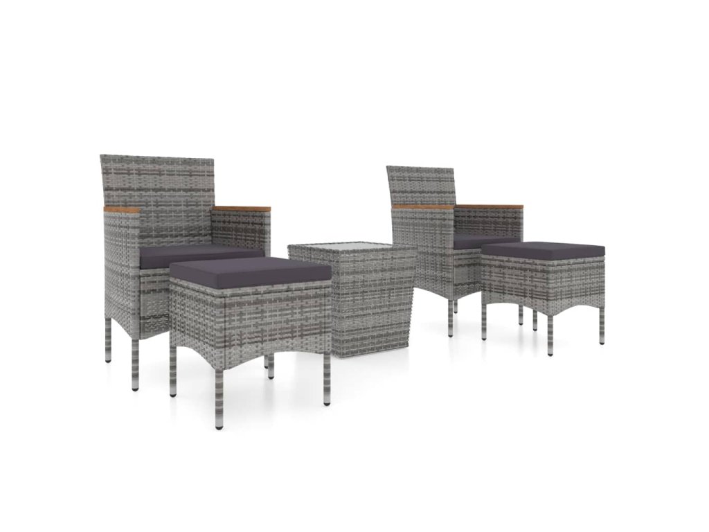 5dílný zahradní bistro set polyratan a tvrzené sklo šedý 3058375