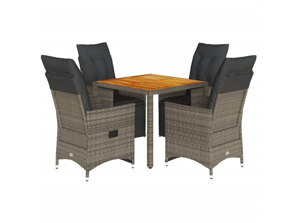 5dílný zahradní bistro set s poduškami šedý polyratan 3276886