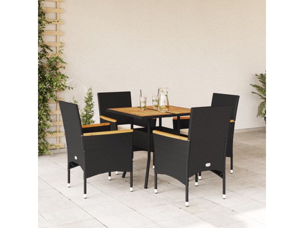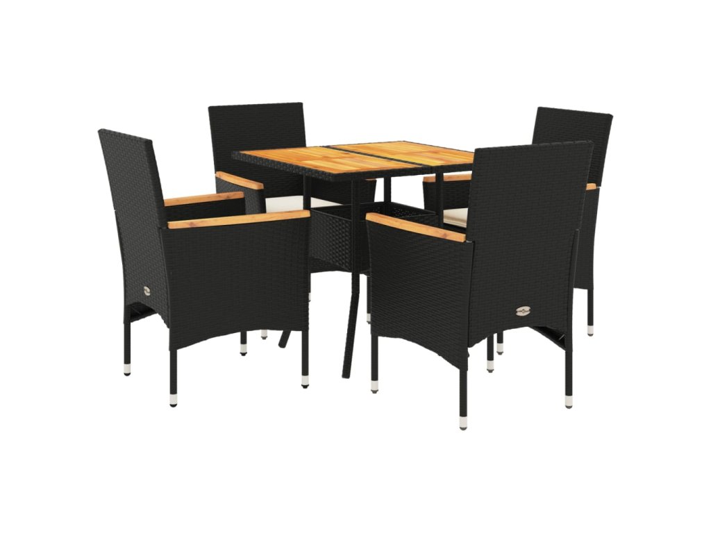 5dílný zahradní jídelní set a podušky černý polyratan a akácie 3278698