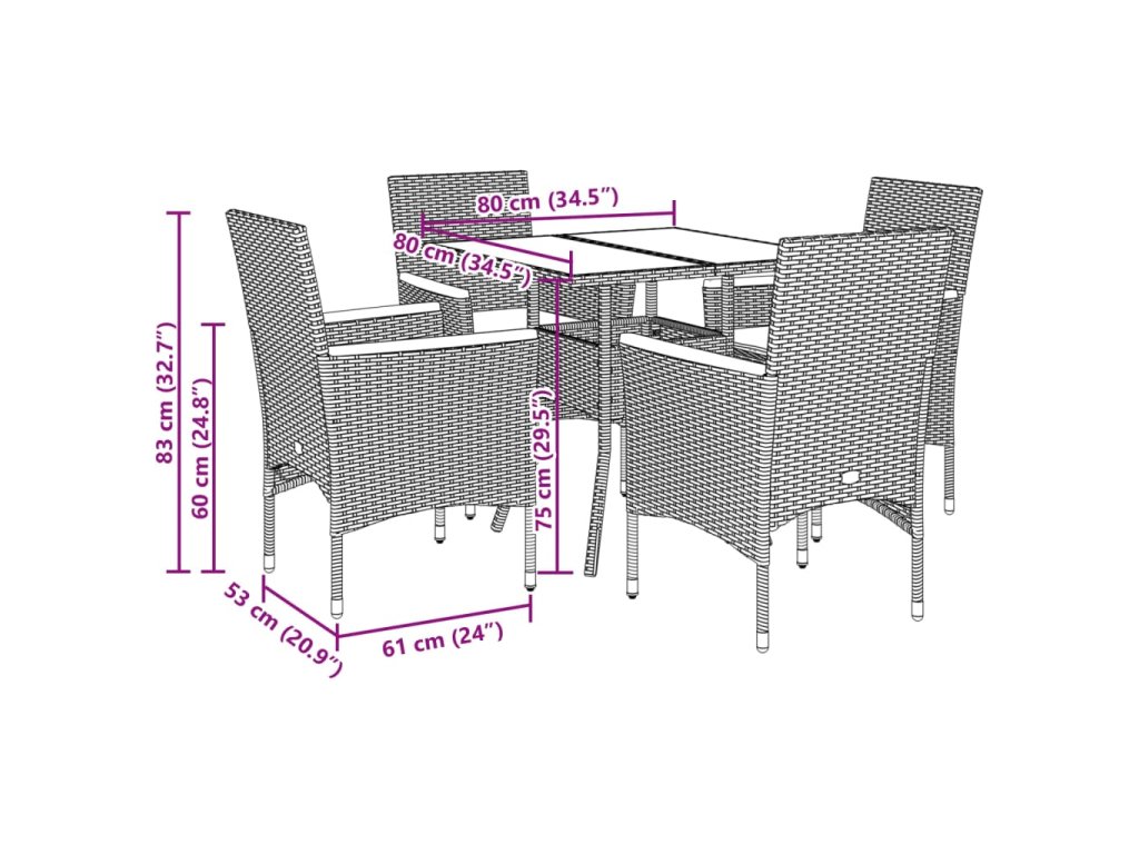 - Rozměry: 80 x 80 x 75 cm (Š x H x V)
