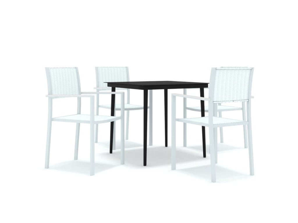 Jídelní set na terasu má práškově lakovaný ocelový rám, takže je robustní a stabilní a ideální pro venkovní použití. Hladká skleněná deska stolu se snadno čistí vlhkým hadříkem a skvěle vám poslouží k podávání jídla a pití nebo k vystavení různých dekorativních předmětů. Lehké jídelní židle jsou vyrobené z plastu, lze je proto bez problémů udržovat v čistotě a přesouvat je. Svým provedením navíc připomínají ratan, a tak vnesou do vašeho venkovního bydlení nádech přírodního kouzla!
