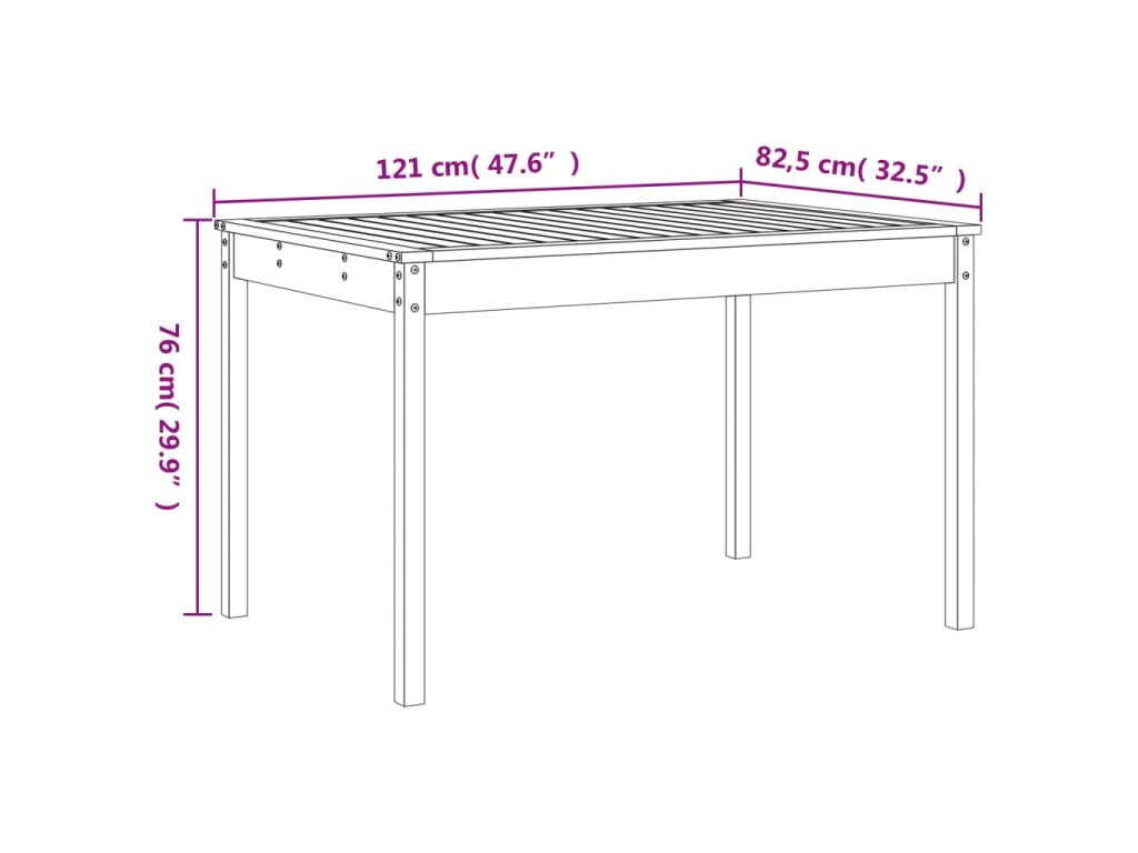 - Rozměry zahradního stolku: 121 x 82,5 x 76 cm (D x Š x V)