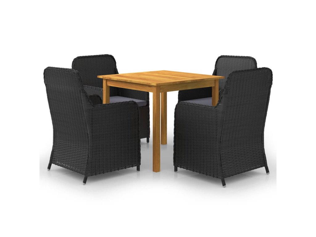 Jídelní stůl je zhotovený z masivního akáciového dřeva s olejovaným povrchem, takže je stabilní, odolný a nenáročný na údržbu. Jídelní židle mají rám z práškově lakované oceli, opletený PE ratanem, který výborně vzdoruje klimatickým vlivům. Dlouho vám proto vydrží a snadno je očistíte. Ergonomický tvar spolu s hustě polstrovanými poduškami vám při sezení zaručí maximální pohodlí. Polyesterové potahy podušek nevyžadují téměř žádnou údržbu a dají se jednoduše stáhnout a oprat.